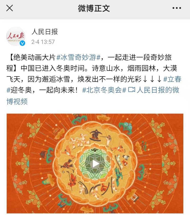 2月4日,《人民日?qǐng)?bào)》微博“絕美動(dòng)畫(huà)大片#冰雪奇妙游#一起走進(jìn)一段奇妙旅程”吸引眼球,引發(fā)廣泛關(guān)注。更讓人驚喜的是,參與動(dòng)畫(huà)制作的有安慶工業(yè)學(xué)校計(jì)算機(jī)應(yīng)用專(zhuān)業(yè)學(xué)生葛天皓。